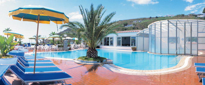Le piscine di cui dispone l’hotel sono due, entrambe termali, una scoperta completa di solarium e vista panoramica, l’altra coperta con idromassaggio e spogliatoi. Ai bambini dai 4 ai 10 anni sono dedicate altre due piscine non termali in una piccola zona attrezzata con solarium.