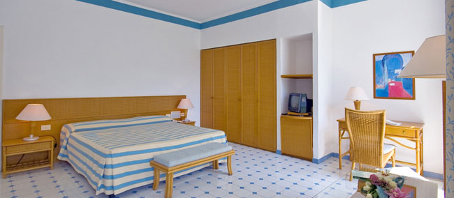 Tre le tipologie di camere: vista mare, vista giardino e junior suite; tutte dotate di: climatizzatore, frigobar, Tv, telefono, filodiffusione, cassetta di sicurezza, phon e collegamento ad internet.