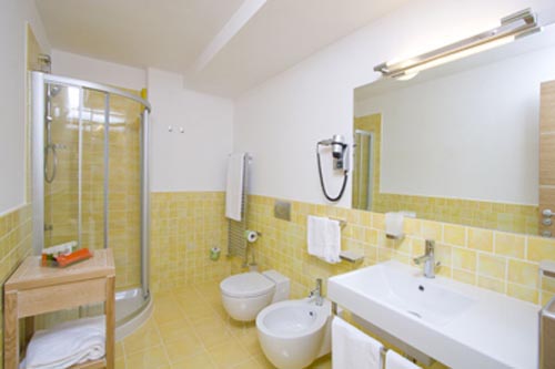 - Doppia Classic, di cui alcune con terrazzino piano terra, altre con vista montagna e altre ancora con uso esclusivo di bagno turco e idromassaggio, sono confortevoli e dotate di tutti i servizi delle Superior.