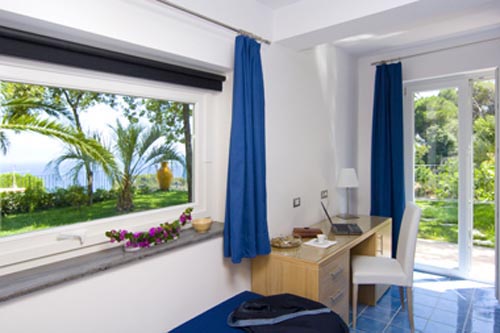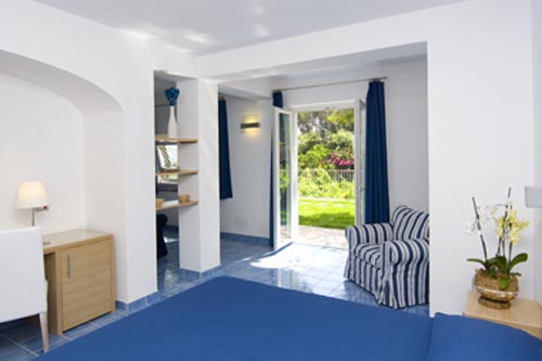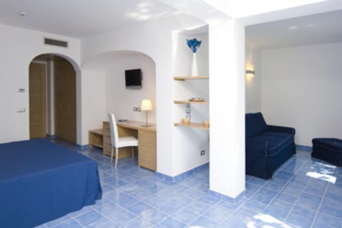 - Junior Suite, un vero e proprio mini appartamento, molto elegante e curato, dotato di zona soggiorno, salotto, giardino, cassetta di sicurezza, internet, minibar, tv sat, phon, aria condizionata e architetture espressamente pensate per i diversamente abili.