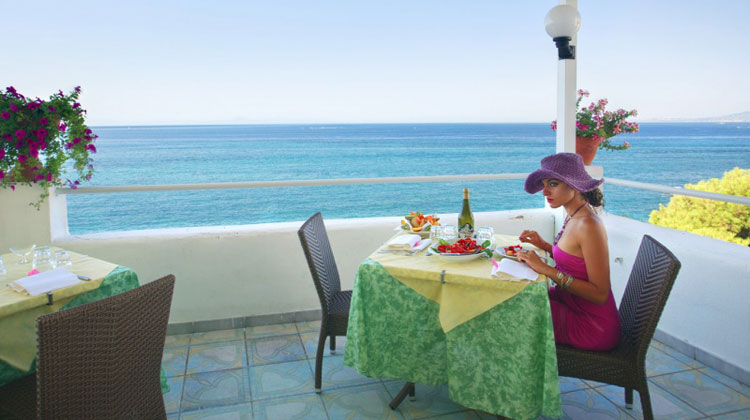 Il ristorante dell’hotel si caratterizza per una cucina tipica e di mare, con specialità nazionali e regionali, servite sulla splendida terrazza a picco sul mare.