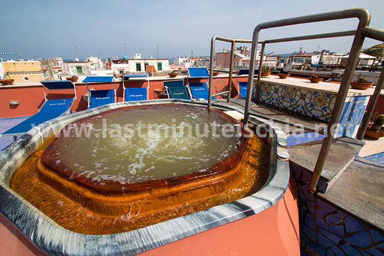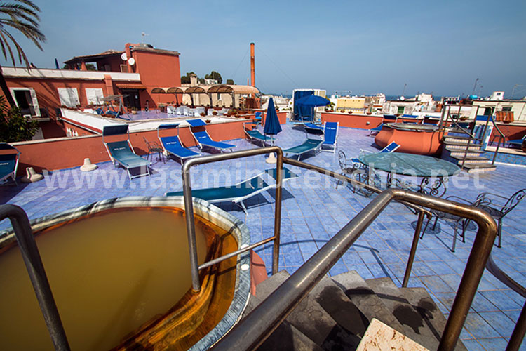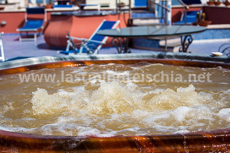 Le piscine sono due, una termale coperta con temperatura di 36-38 gradi, l’altra esterna su di un ampio terrazzo solarium, dotato di idromassaggi, lettini e ombrelloni.