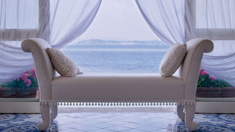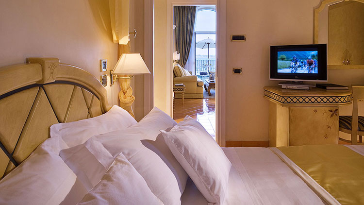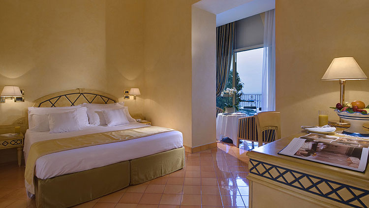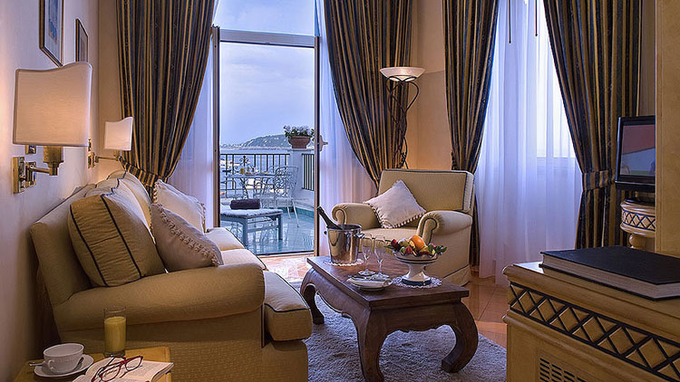 - Junior Suite, o con terrazza sul golfo, salottino e camera, con posti letto per quattro persone; oppure adatta a famiglie di cinque persone, poiché prevede l’aggiunta di una singola alla configurazione precedente.