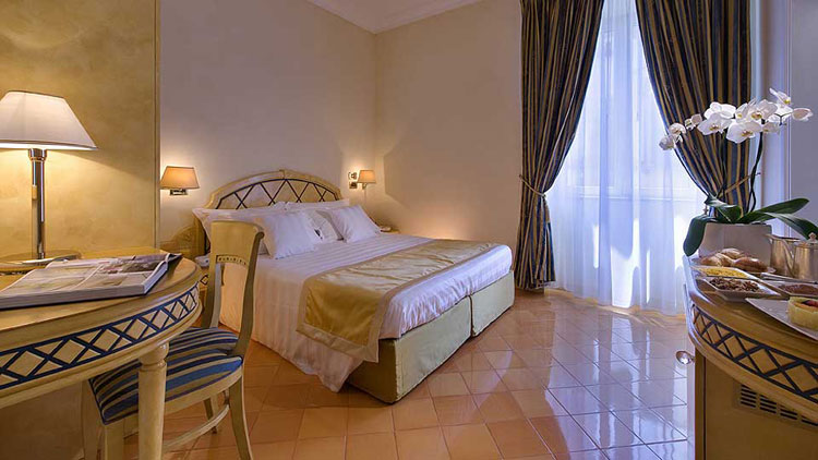 - camera doppia standard, in stile mediterraneo, con bagni decorati dalle tipiche ceramiche vietresi. Vista sul monte Epomeo o sul centro storico.