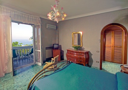 Le camere, disponibili nelle tipologie doppia vista giardino, doppia vista mare e lussuosa junior suite sono arredate con gusto per esaltare i profumi del mare e i colori della natura circostante, con tocchi di maestosità come lampadari preziosi e mobili d'epoca. Tutte sono fornite di servizi privati, TV satellitare, telefono, phon, aria condizionata nei mesi estivi, cassetta di sicurezza (a pagamento).