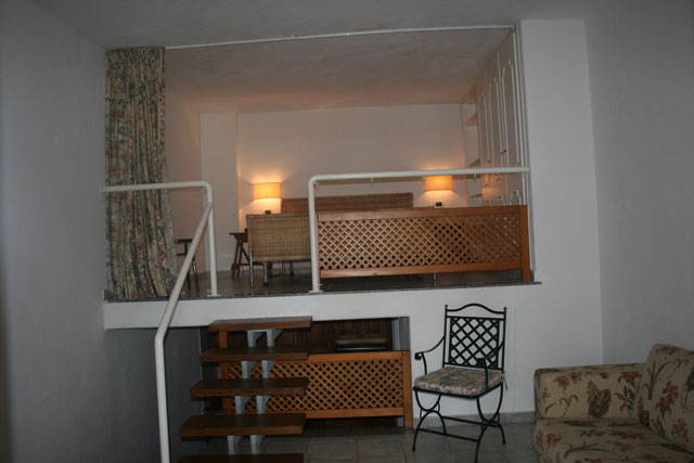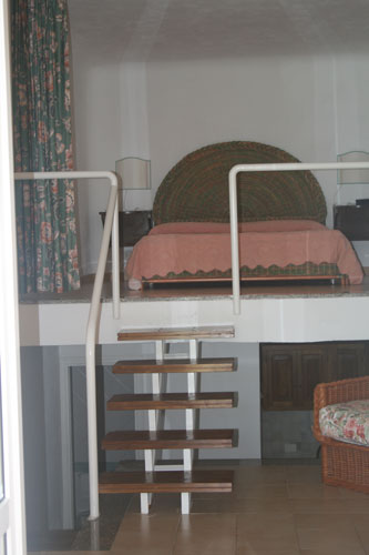 - Mono A, composto da soggiorno con divano letto, soppalco con letto matrimoniale, angolo cottura, patio esterno.