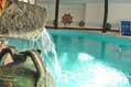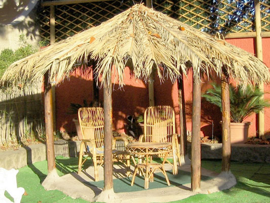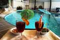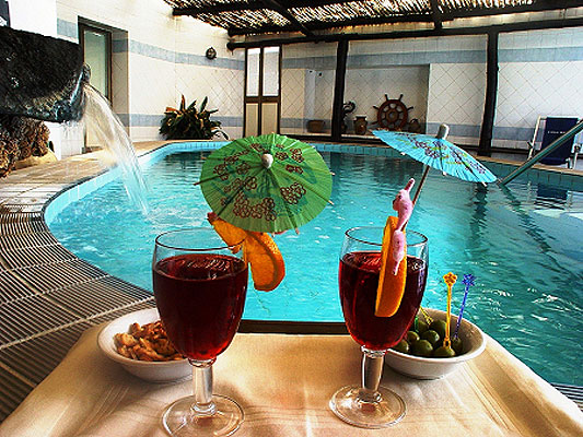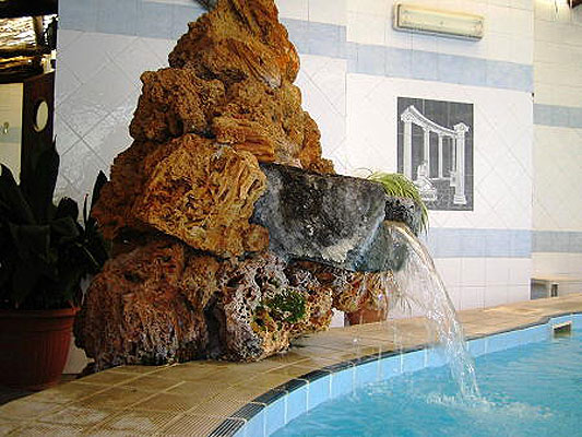 Nel giardino si trovano le due piscine, quella scoperta e quella calda coperta, entrambe dotate di idromassaggio, sauna e spazi attrezzati in cui godere dei massaggi del fisioterapista interno all’hotel.