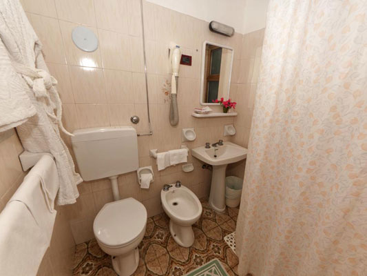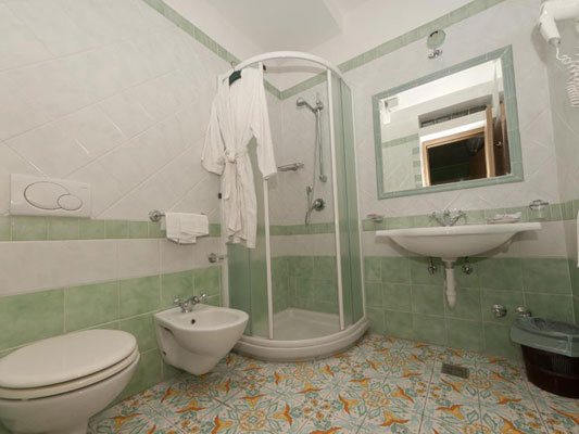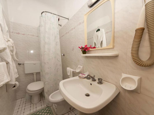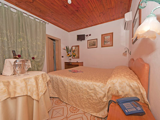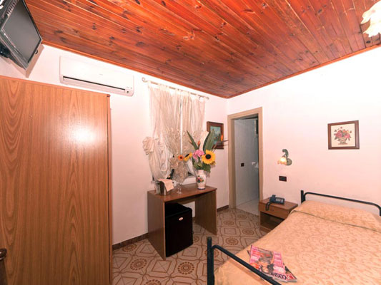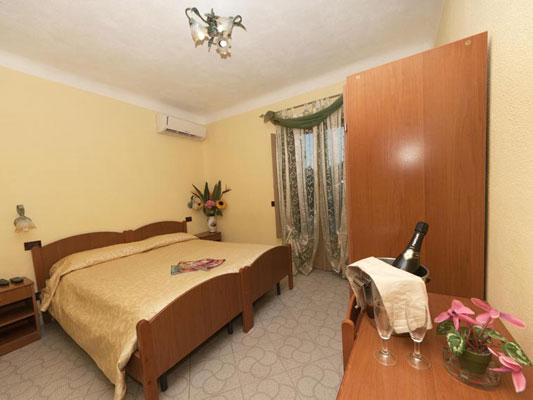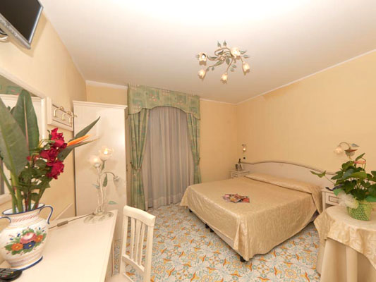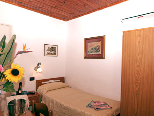 Le camere, ristrutturate nel 2007 prediligendo colori pastello e rilassanti, dispongono di riscaldamento, aria condizionata centralizzata, phon, TV satellitare, cassaforte, minibar, telefono e sono quasi tutte provviste di terrazzino.